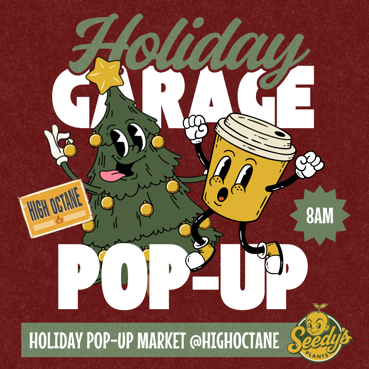 Swing by the retro pumps of High Octane Coffee for Seedy’s Plants Holiday Garage Pop-Up! We’re rolling in a sleigh-full of fresh, fragrant live greens and holiday accents to deck every hall (and porch).