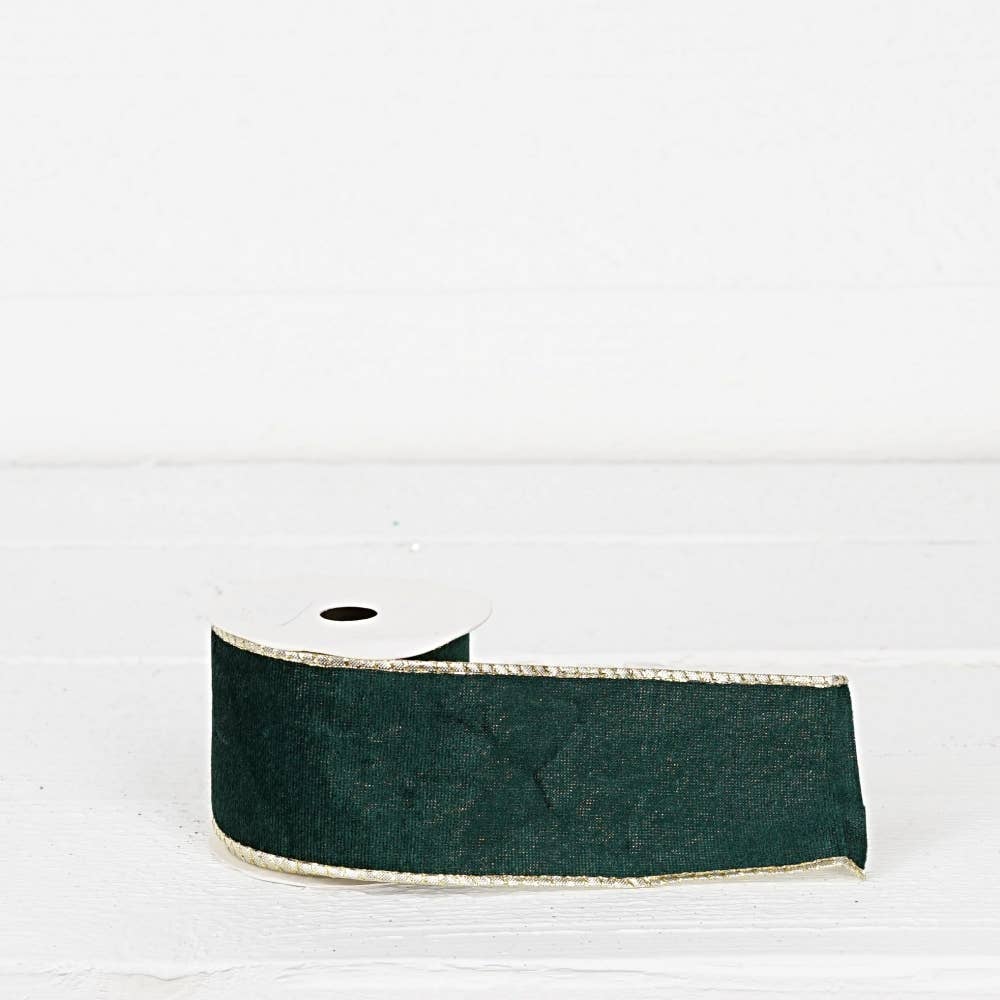 • Custom Bow: Wired Ribbon Green Velvet & Gold 2.5" inch